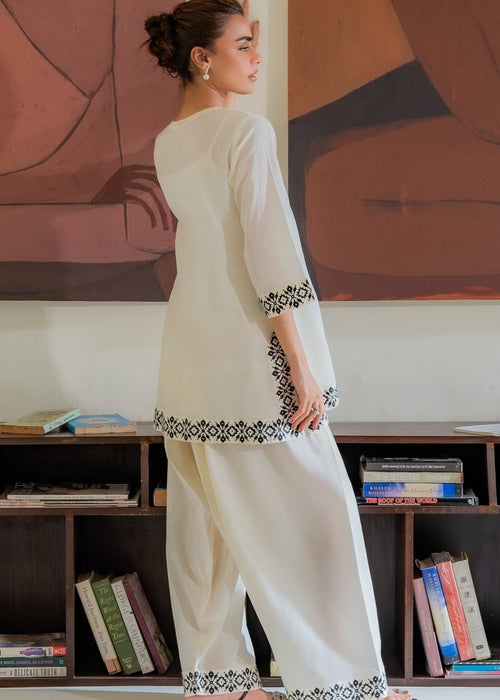 Elevate your everyday style with the Etnic Touch Co-Ord Set by RS Fashion. Designed in breathable Arabic Lawn, this two-piece ensemble blends simplicity with sophistication, making it a perfect choice for summer daily wear.